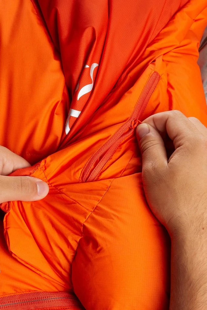 Il dispose d’une fermeture éclair YKK 5 sur toute la longueur avec un renfort anti-accroc et un double curseur. Celle-ci est doublée d’un rabat antifroid conséquent. Une collerette généreuse qui garantit l’isolation au niveau du cou. A l’intérieur, l’Andes Infinium 800 dispose d’une petite poche zippée et il est fourni avec une house de rangement, ainsi qu’un sac de compression imperméable par enroulement.
