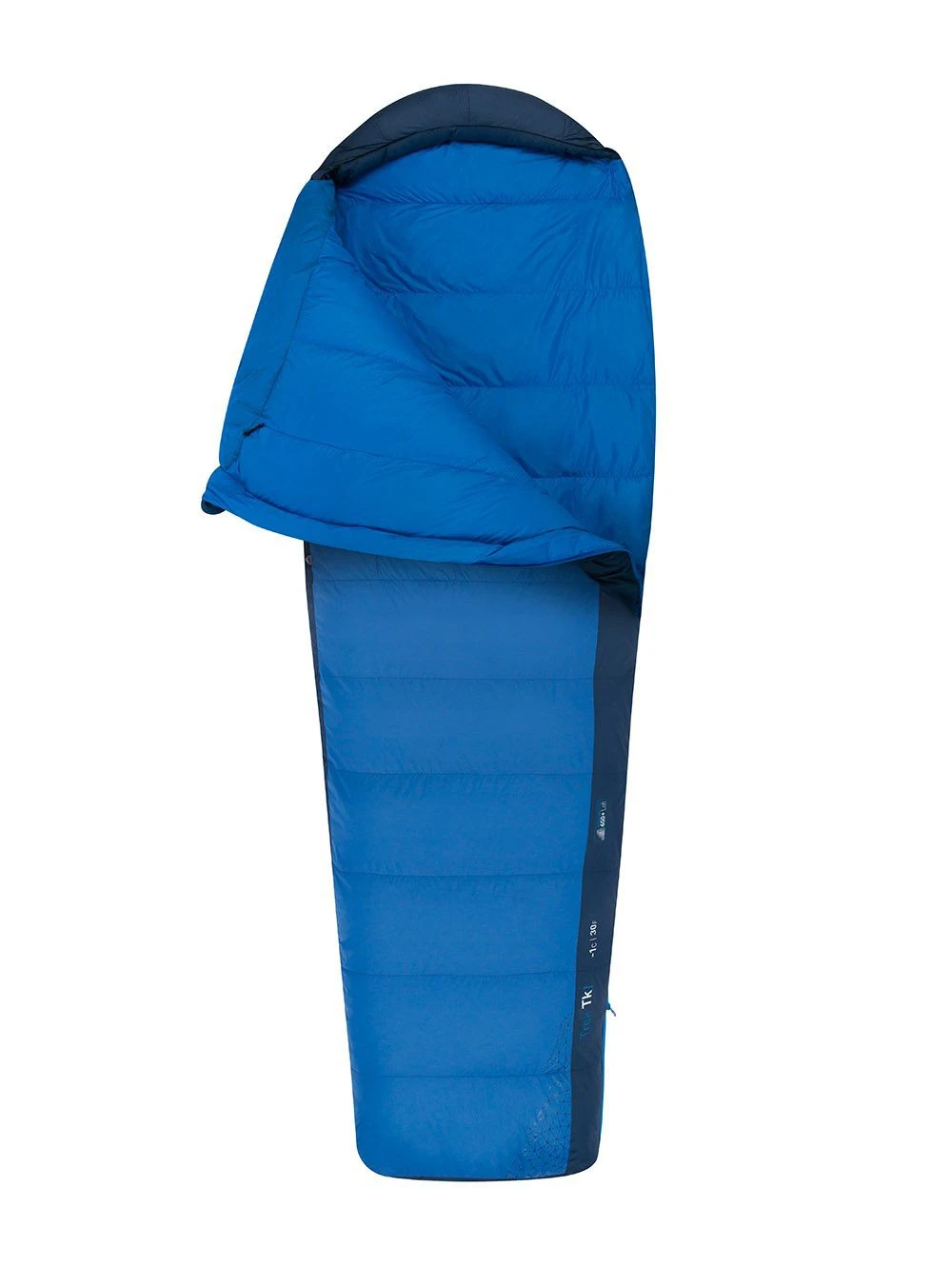 En terme de garnissage, le Trek TKI est doté de 350 grammes (Taille Regular) de duvet de canard 650+ 85/15. Ce duvet de canard de qualité est traité contre l’humidité (Ultra Dry Down) lui assurant un bon pouvoir gonflant. L’enveloppe interne et externe est conçue en nylon 20D et 30 deniers.