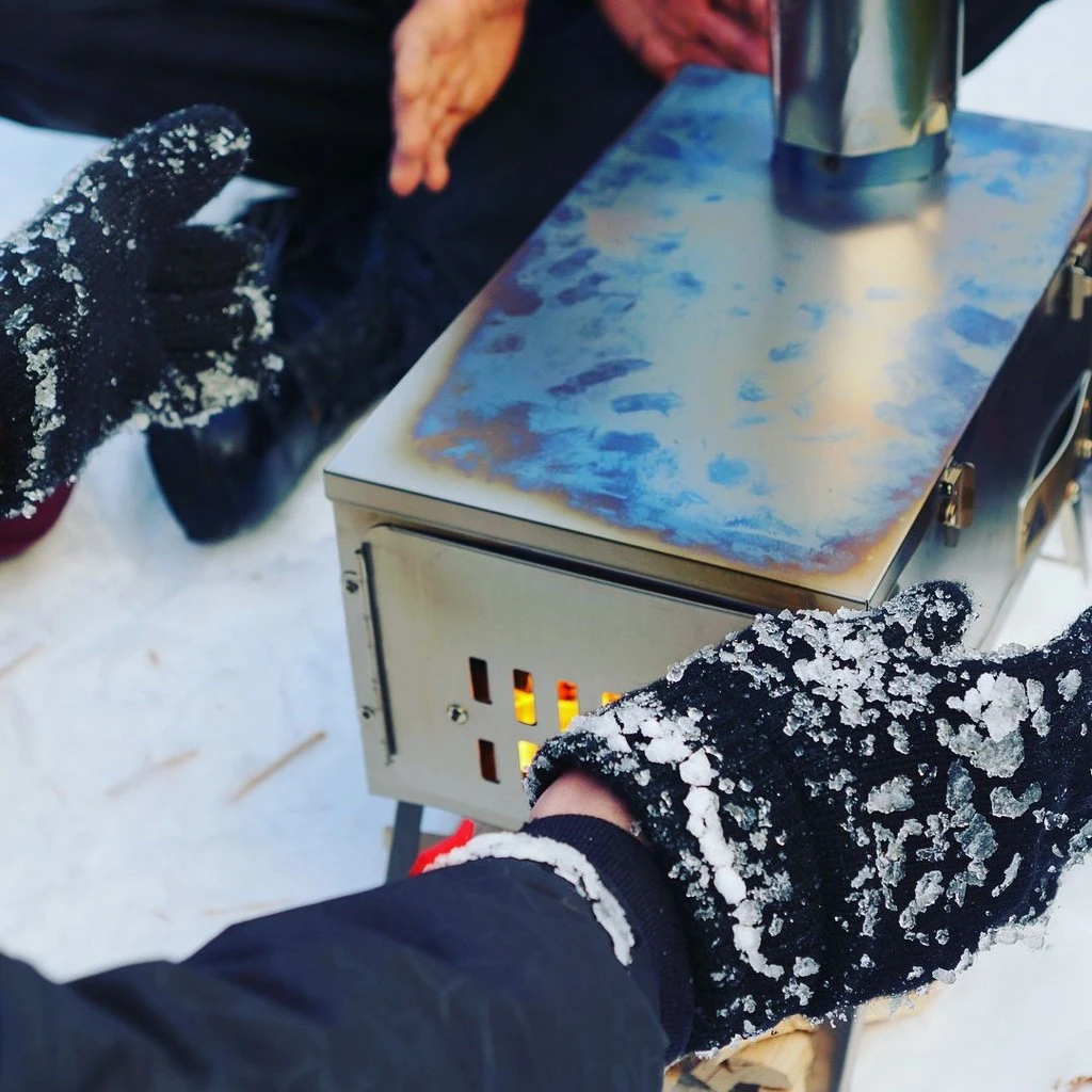 Poêle à bois en titane, ultraléger et compact, très facile à transporter.